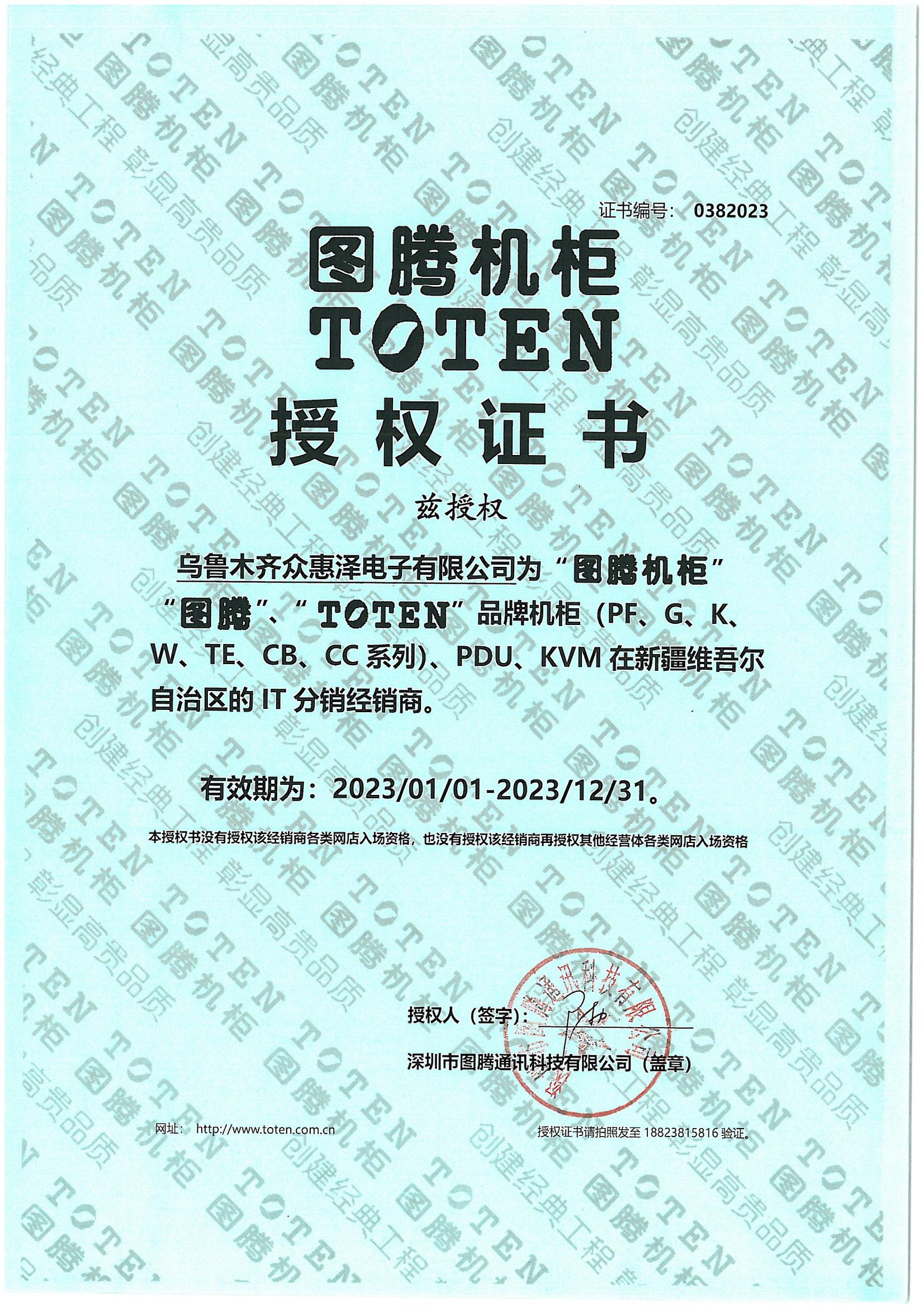 新疆眾惠澤電子有限公司是一家銷售圖騰機柜、PDU、綜合布線產品、長飛光纜,ATEN全系列以及光纖傳輸產品的專業化網絡設備提供商,是深圳市圖騰通訊科技有限公司正規授權的特約經銷商。公司成立至今已經為眾多系統集成商、弱電工程商提供優良的產品和完善的售后服務,客戶群體包括:政府部門、銀行證券系統、IDC中心機房、部隊、學校、房地產開發公司、大型上市公司、大型電力機構、運營商等。